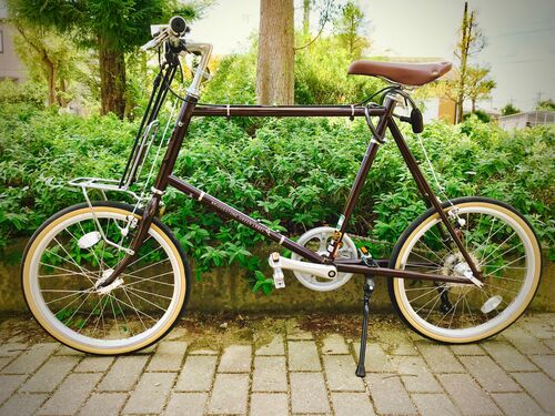 そして昨年の初秋、クエロ20がやってきた。ヤア!ヤア!ヤア! ああ、小さいな、が第一印象の実物は我が眼にはしかしなかなかの質感に映った。革調のグリップやサドル、真鍮製のベル、あえてダウンチューブに配されたシフトレバーなどなど、この辺り、70年代の…