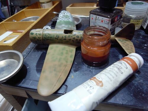 デカールを乾燥させつつ数日がたった。「情熱」は自家製ヨーグルトが増殖する様なもので僅かづつながらわが身に蓄えつつある。 ここでおもむろに水性のフラットクリアーを塗料棚からとりだしエアブラシに注ぐ。まずデカールの部分はクリア濃度を高めにして慎…